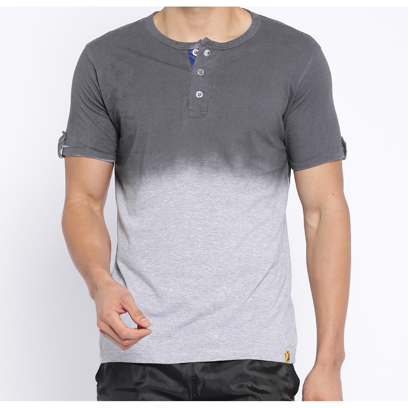 Grey ombre-dyed T-shirt, has a Henley neck, short sleeves with upturned hems 100% cotton machine washable