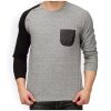 Grey and black colour blocked T-shirt, has a round neck, long sleeves