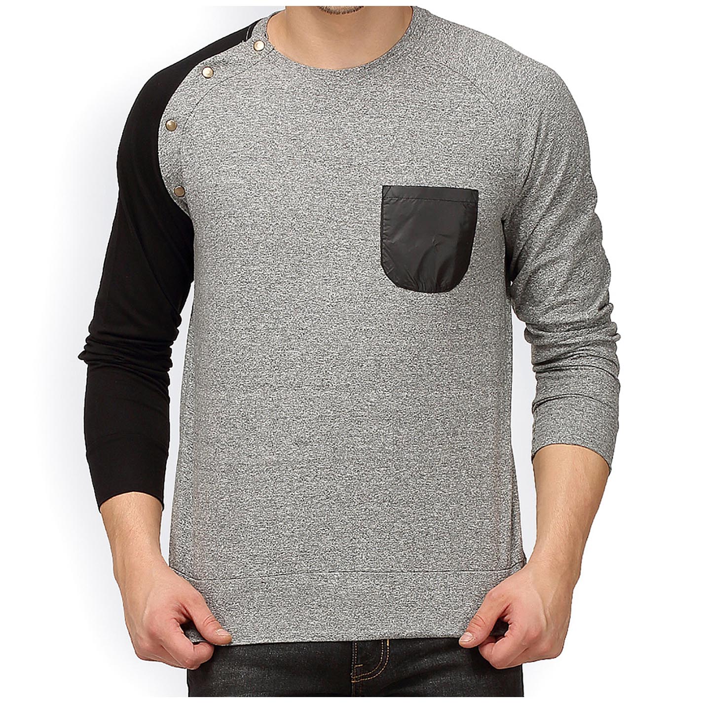 Men Grey Color Blocked Round Neck T-Shirt